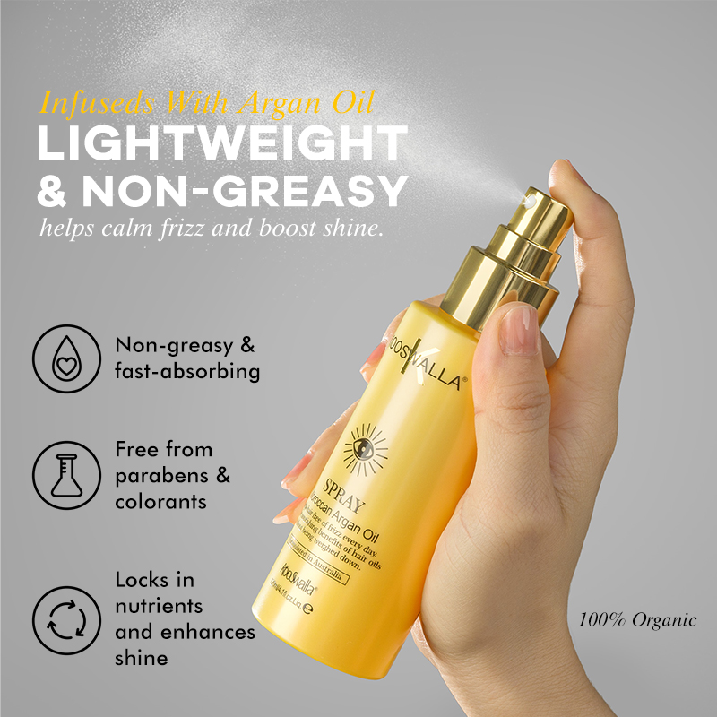 - Unveil Lustrous Locks with [KOOSWALLA] Argan Oil Spray – A Symphony of Lightweight Brilliance and Intense Moisturization!Embark on a Journey of Hair Transformation – Feather-Light Radiance and Luxurious Hydration!Are you ready to elevate your haircare experience to new heights? Introducing [KOOSWALLA] Argan Oil Spray, a luxurious elixir designed to bring a touch of opulence to your locks.